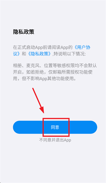 下载安装后首次启动需阅读隐私条款;