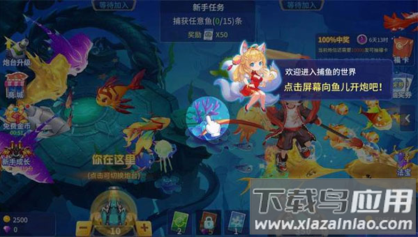 跟随小狐仙指引掌握基础操作,教程包含炮弹折射技巧、特殊鱼种触发条件等进阶内容,完成所有引导可获赠5000金币;