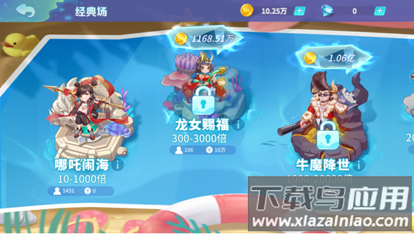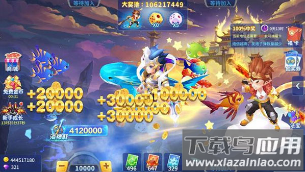 经典捕鱼与神话剧情巧妙结合,渔场中出现手持金箍棒的孙悟空、驾云而来的唐僧等西游角色,击败他们可触发全屏爆金特效;金银角大王等BOSS登场时,渔场会切换专属主题场景;