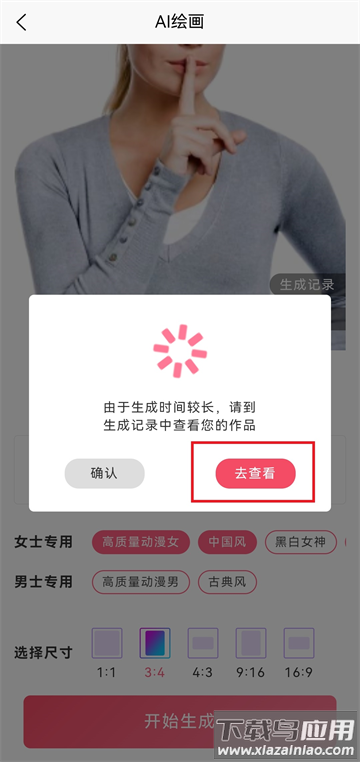 3、点击生成之后需要等待一会,可以直接点击去查看跳转到生成记录里保存转换后的图片。