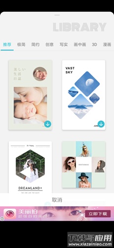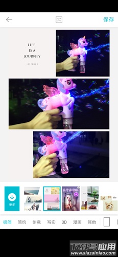 杂志拼图包含极简、创意等多种风格模板,选择照片后点击开始按钮即可生成杂志效果的大片。