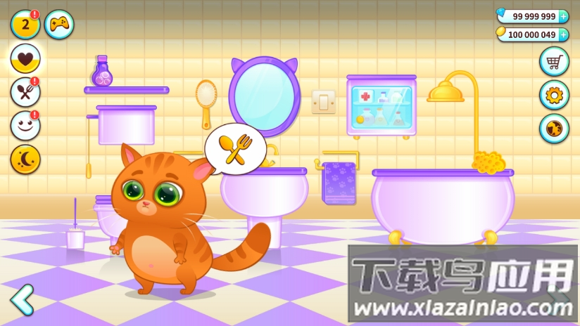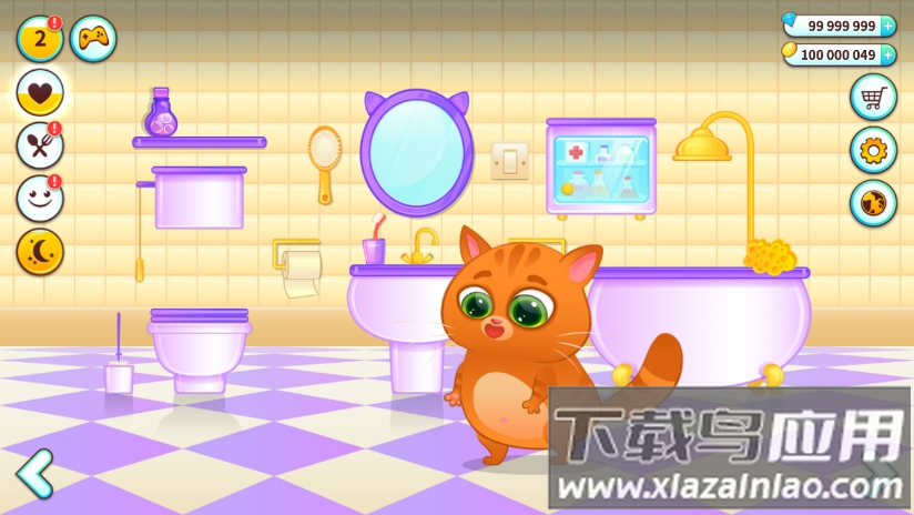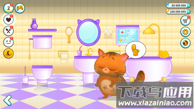 首先清理场景中的蜘蛛网等杂物;根据猫咪头上的气泡提示进行操作;如厕时需要打开马桶盖让猫咪使用;洗澡时需长按花洒并配合沐浴球清洁;喂食前要通过冰箱选购食材;游戏内还包含多种趣味小游戏;通过商城可以购买服饰装扮猫咪和装饰房间。