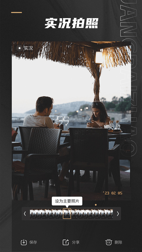 一键生成胶片质感照片,省去繁琐后期流程;双镜头自由切换,前置摄像头自带柔光美颜;暗光环境下开启闪光灯可拍出冷白皮效果;提供九宫格构图辅助线,新手也能快速上手;经典时间戳功能支持自定义日期,打造怀旧老照片效果;最多可收藏6款常用滤镜,拍摄时快速调用。