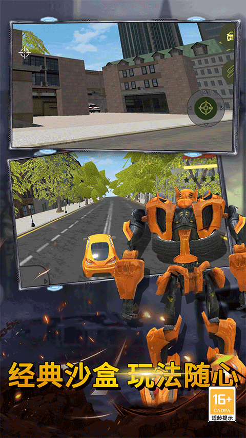 在这款充满未来科技感的开放世界动作游戏中,你将操控一辆能够自由变形的超级跑车机器人。城市正遭受邪恶机械军团的侵袭,作为最后的守护者,你需要运用双形态切换的特殊能力,在钢铁丛林中展开激烈对抗。高速驰骋的跑车模式让你快速穿越街道,瞬间变形为战斗机器人后又能施展强力攻击。逼真的物理引擎带来震撼的打击感,丰富多样的武器系统让每场战斗都充满变数。注意随时可能从街角冲出的敌人伏击,一旦生命值归零就需要支付金币复活。现在就加入这场机械大战,用钢铁之躯捍卫人类最后的家园。