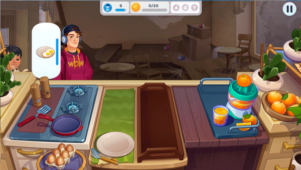 点击屏幕直接进入烹饪世界,快速投入餐厅经营;遇到剧情动画时可以选择跳过,立即开始制作美食;通过简单点击就能完成食材加工,装盘后要及时送到顾客面前;注意观察顾客需求气泡,有人需要饮料时要快速递上橙汁;保持餐品供应速度,避免顾客头顶出现不耐烦的计时器。