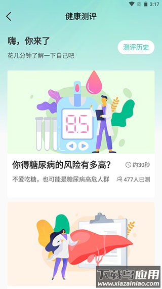 1、打开app,进入主页,点击【健康评测】。