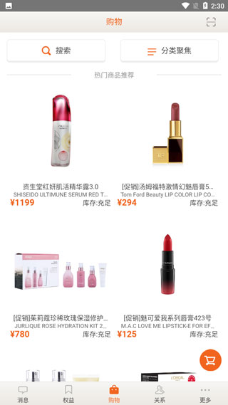 1、社交化购物:支持微信、微博一键分享热门商品,与好友实时互动;