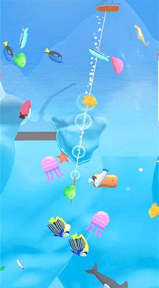 大鱼上钩后会剧烈挣扎,必须通过左右滑动屏幕保持鱼线张力;
