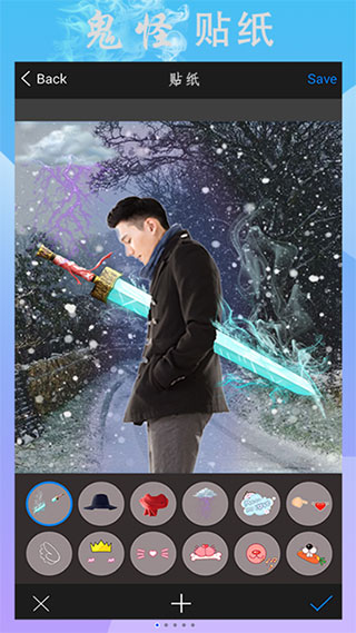 【智能贴纸库】动态更新超过200组分类贴纸,包含潮流表情包、节日主题和艺术文字,人脸识别技术可自动匹配五官位置;