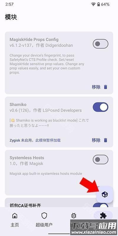 1.确保设备已获取root权限并安装Magisk框架,启动应用后进入模块管理界面;
