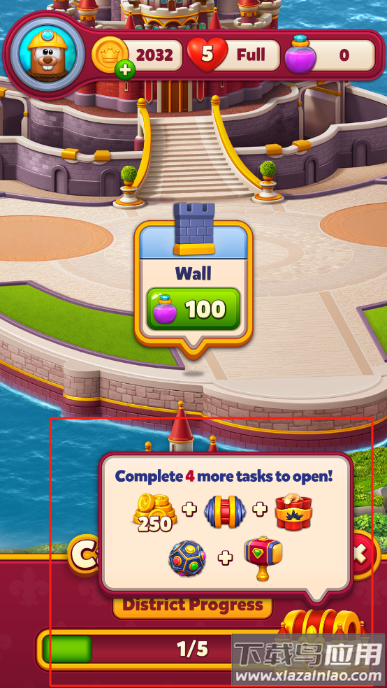 通过消除获得建造资源,从议会广场到公主塔逐步扩建领地;每个建筑都能提升王国实力,解锁新的游戏区域和功能;