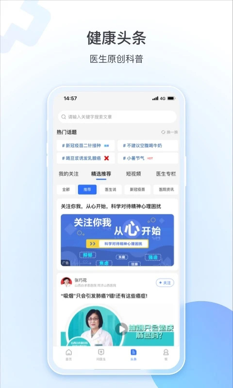 所有执业医师信息透明公开;足不出户可挂专家号;图文问诊支持在线开药;检查结果手机随时查。