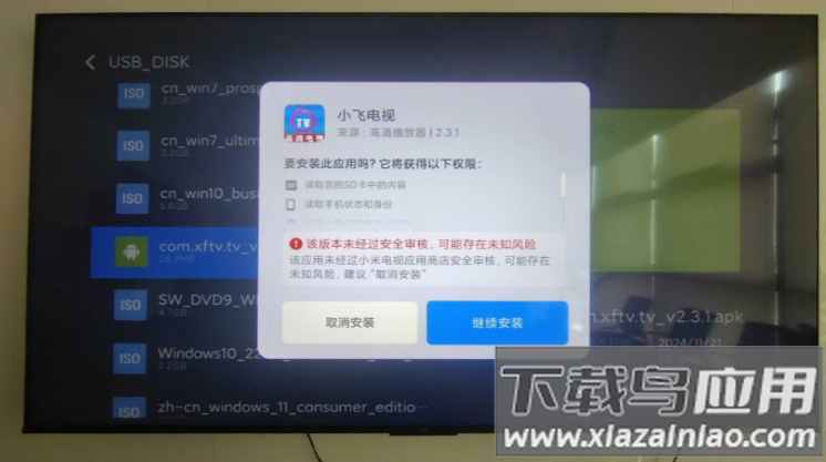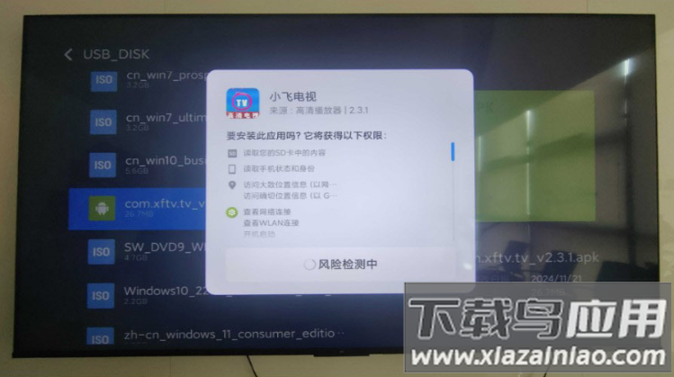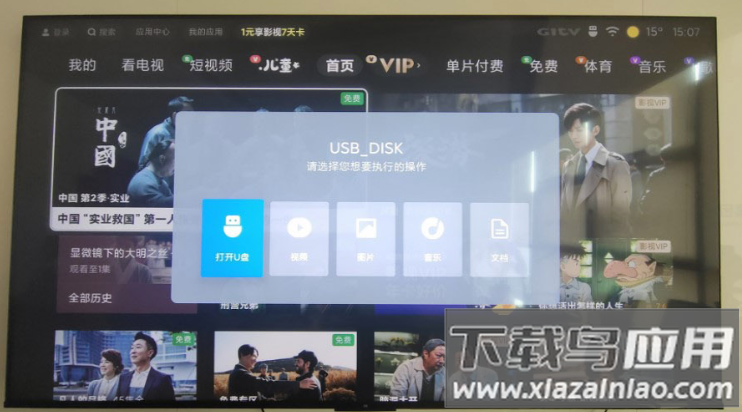 2、将U盘插入电视USB接口,系统会弹出设备检测提示;