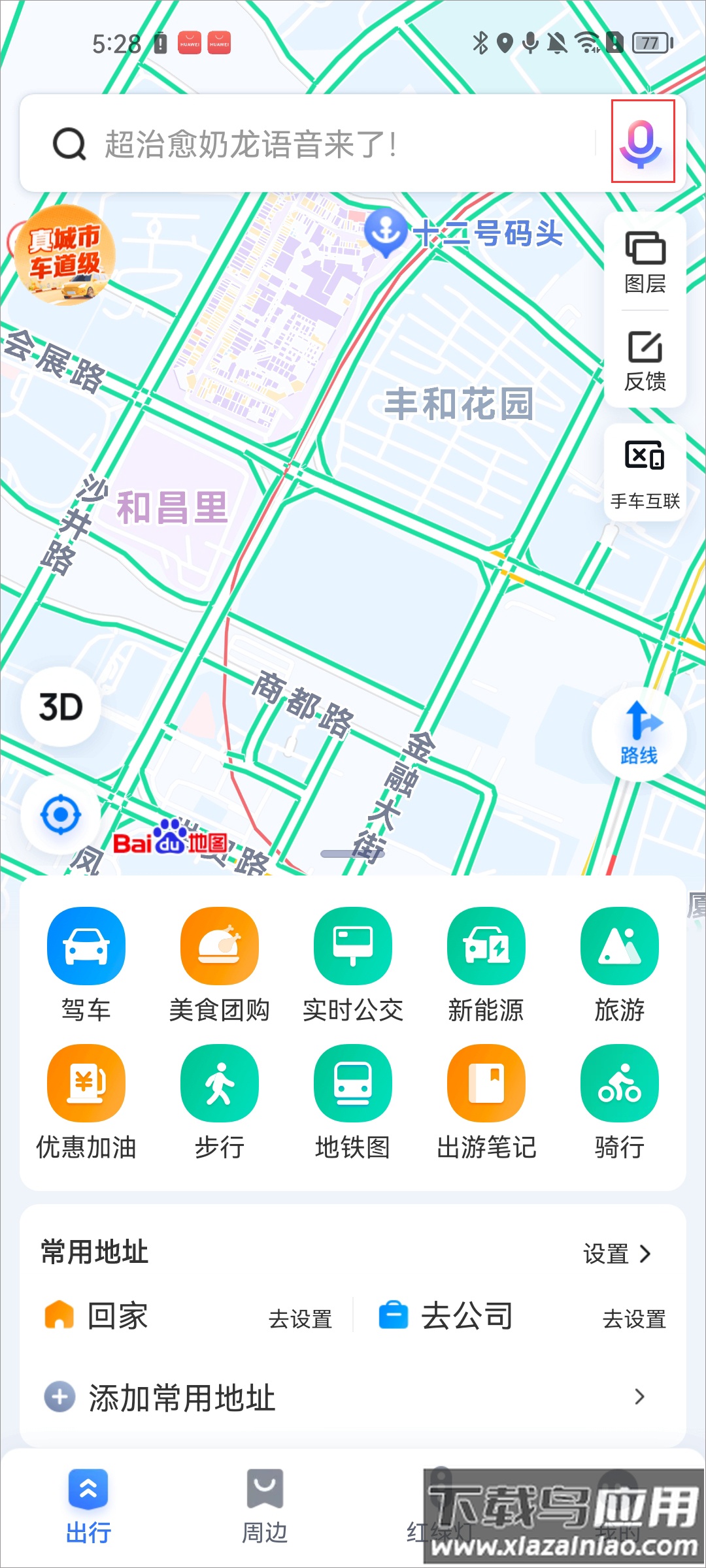 1、打开手机百度地图精简版,选择上方的录音图标;