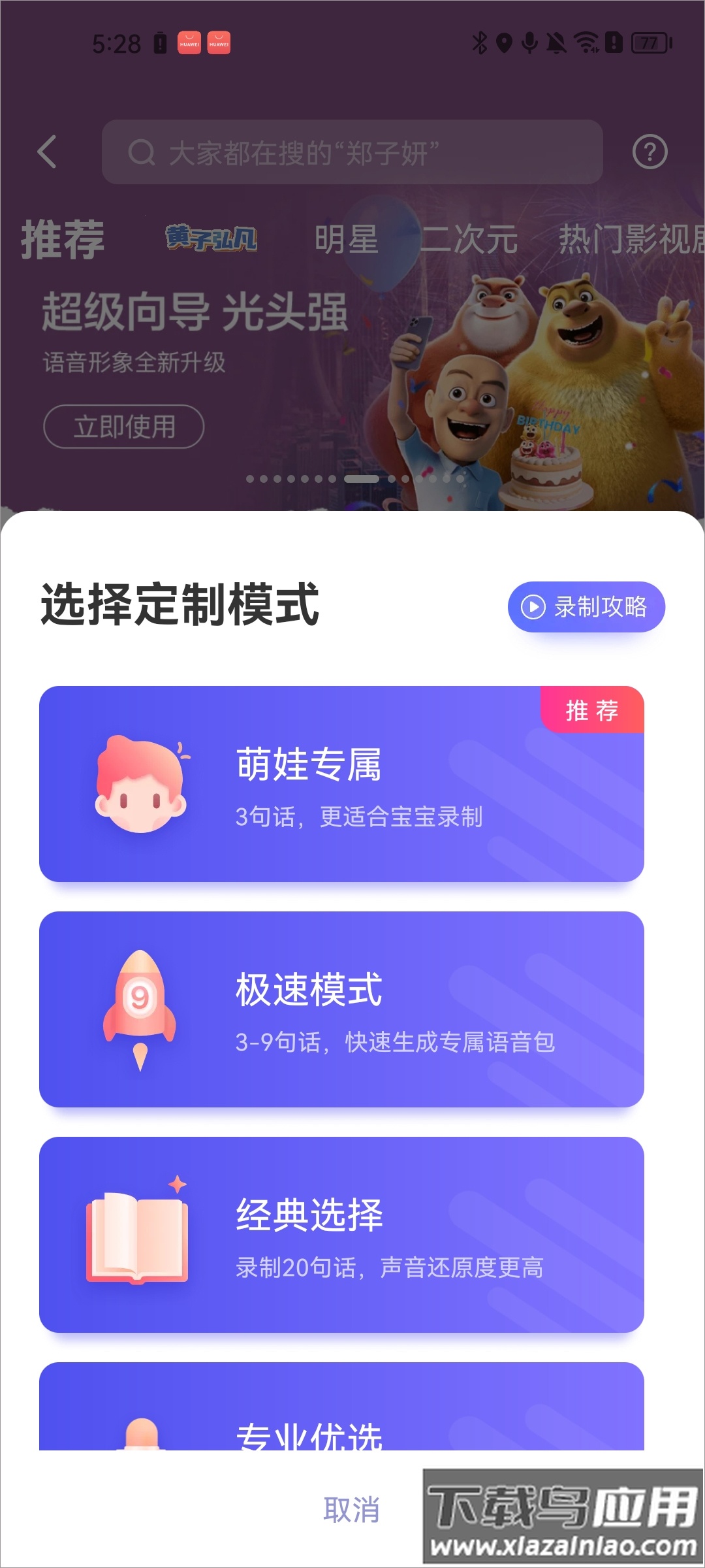 4、选择定制模式,如果不会的可以选择看一会录制攻略;