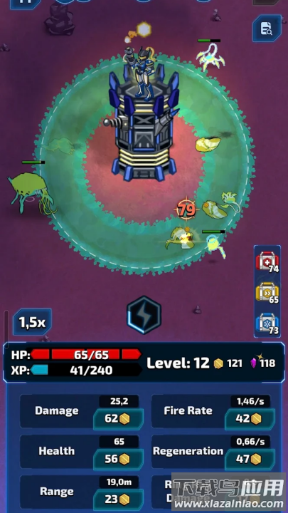 1、12种基础炮塔衍生出36种进阶形态,冰冻射线能减缓敌人,等离子炮可穿透多个目标;