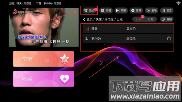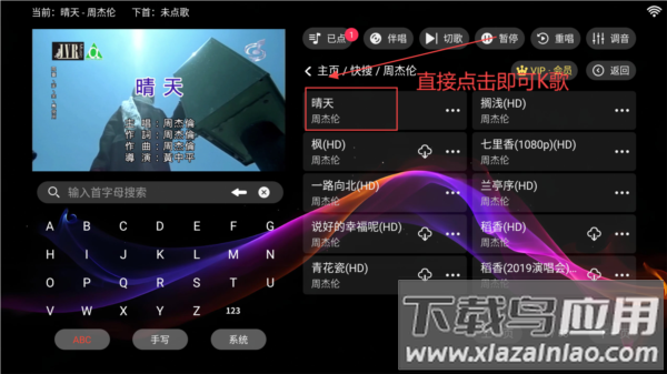 4、通过手机选歌后自动同步到电视播放,手机可充当遥控器使用;
