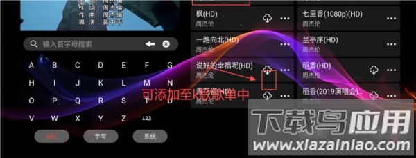 4、长按歌曲条目可添加到待播列表,支持创建个人专属歌单;