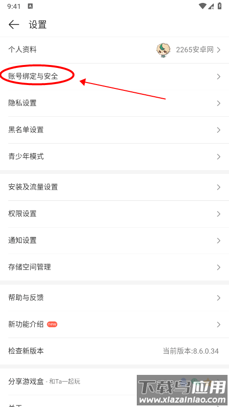 选择账号安全选项;