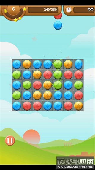 游戏采用经典三消机制,横向或纵向滑动使三个同色方块相连即可消除;