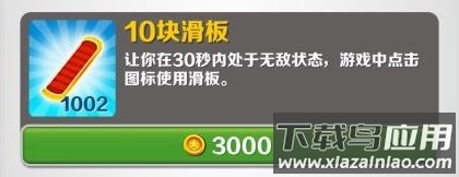 提供一次碰撞保护,撞击障碍物后滑板会碎裂但角色存活;双击屏幕激活后持续20秒,冷却时间45秒;高级滑板皮肤可延长持续时间并缩短冷却。