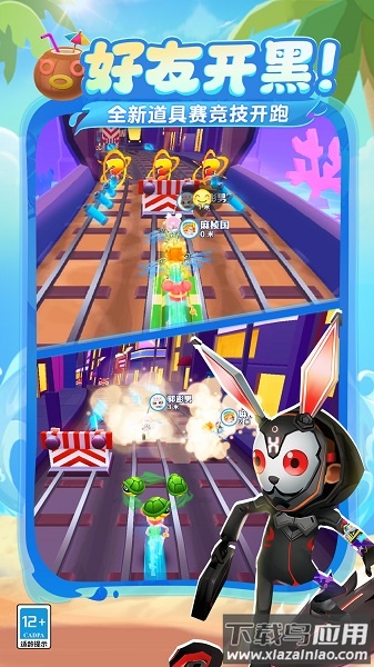 游戏采用竖屏单手操作模式,玩家需在三条平行轨道间灵活切换:向上滑动实现跳跃跨越障碍,向下滑动俯身穿过低矮通道,左右滑动切换轨道躲避列车。连续收集金币可触发连击奖励,途中随机出现的磁铁、喷射背包等道具能帮助玩家突破极限。每局游戏都会遭遇警察与警犬的追捕,合理利用场景中的跳板和栏杆能有效拉开距离。