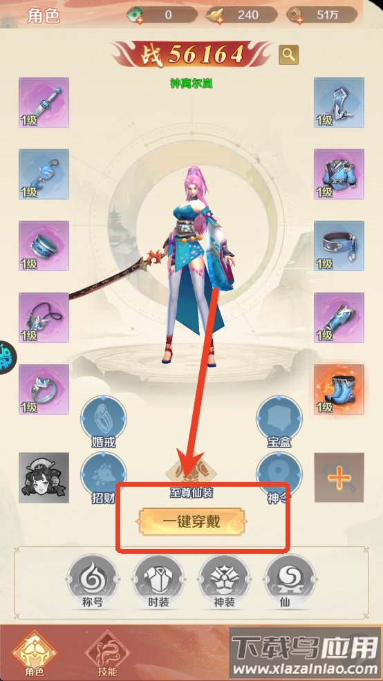4、新装备获取后建议使用一键穿戴功能快速更新配置;