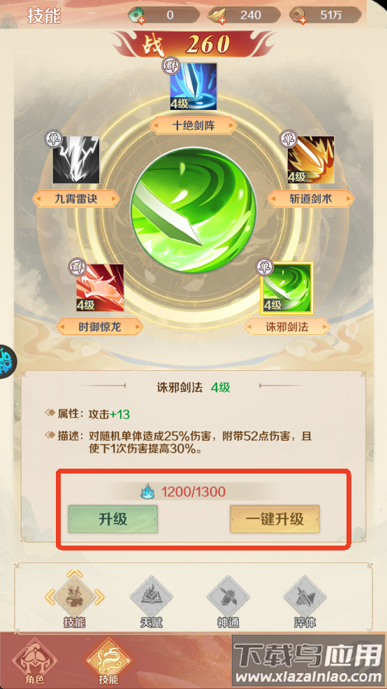 5、灵气储备充足时优先升级技能,这是性价比最高的战力提升方式;