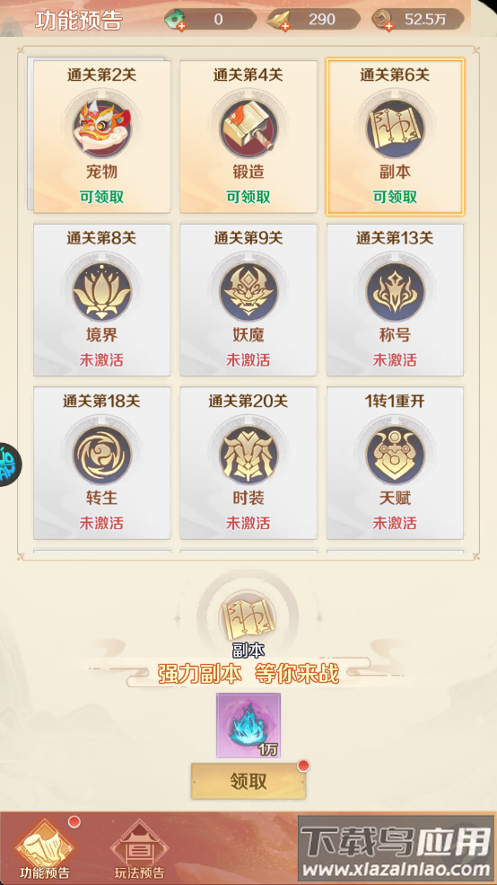 8、随着进度推进将解锁更多功能玩法,记得领取阶段成长奖励。