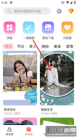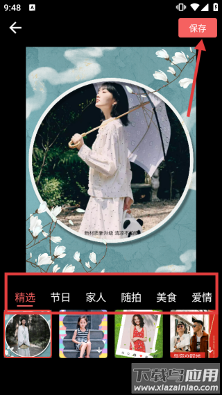 3、进入制作界面,可切换精选节日等分类选图替换,最后点击右上角保存完成操作。