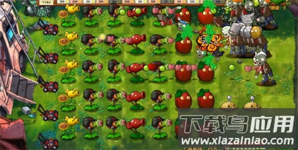 1、阵容推荐:后排豌豆向日葵提供阳光,前排布置樱桃坚果防御,中间部署樱桃机枪射手输出;