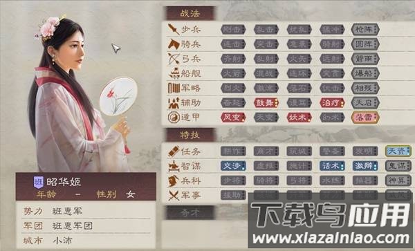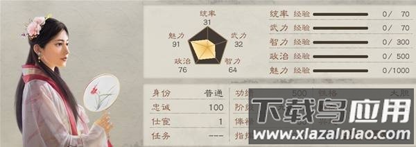 1. 属性:魅力值高达91,战法包含3级鼓舞和落雷;