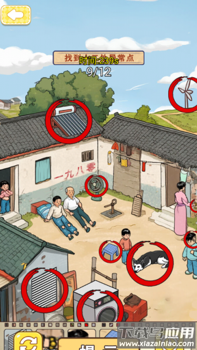 走进年代找茬王的世界,仿佛打开了一本泛黄的相册,那些熟悉的街角巷尾、校园操场和老式居民楼在眼前徐徐展开。这款休闲益智游戏用细腻的手绘风格重现了80年代的经典场景,从铁皮青蛙玩具到露天电影幕布,每个细节都藏着时代的印记。你需要用敏锐的观察力找出画面中违和的现代元素,比如穿梭在凤凰牌自行车流里的电动滑板车,或是趴在供销社门口的哈米狗。游戏将怀旧情怀与解谜乐趣完美融合,背景音乐里老式收音机的沙沙声更让人瞬间穿越;喜欢的就来下载。