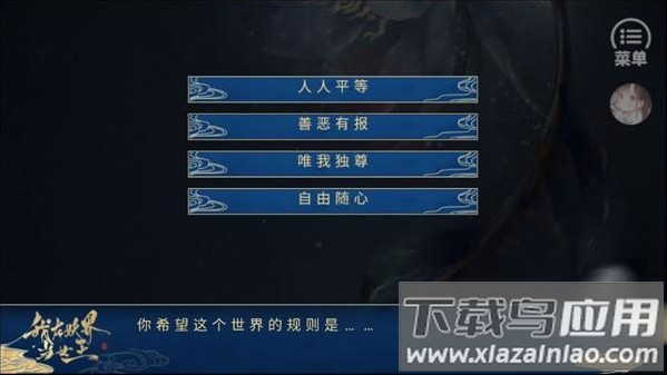 5、自定义世界规则后,通过文字选项推进剧情。