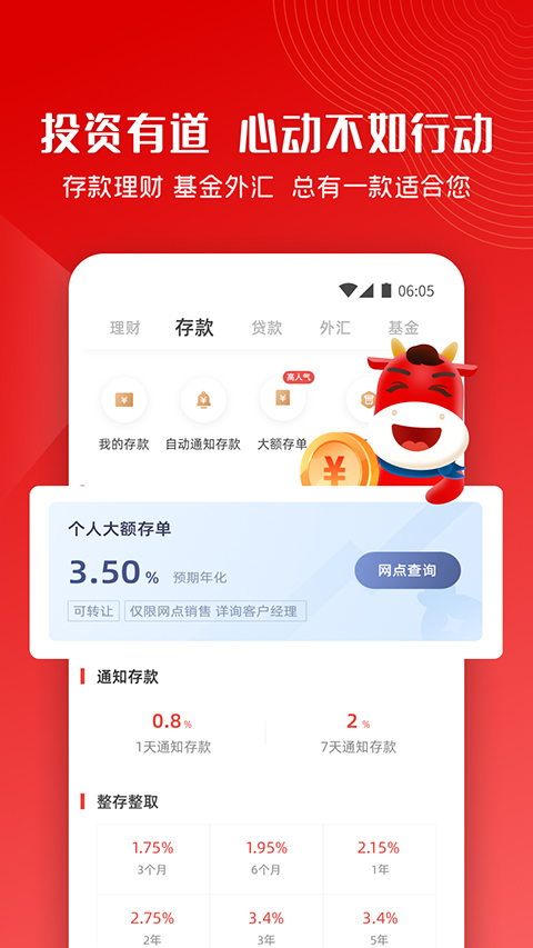 1、首页采用智能货架式布局,存款产品、贷款服务、外汇业务分类展示;