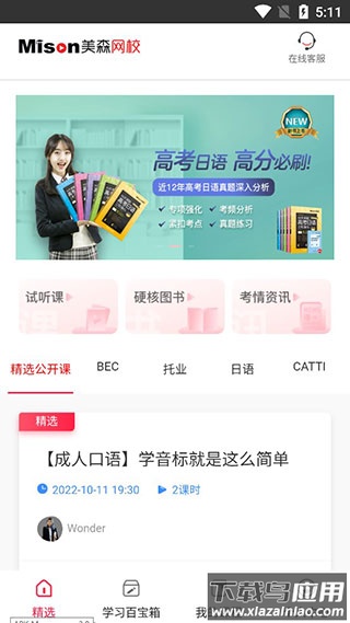 美森网校下载是一款专注于商务英语与日语在线教育的移动学习平台,由大连美森文化教育培训学校研发推出。平台提供BEC、托业、日语等级考试等核心课程,结合直播授课与录播回放功能,满足不同用户的学习需求;自主研发的词汇训练、水平测试等学习工具,配合独家教材体系与专业教师团队,帮助学员系统提升语言能力。无论是职场进阶还是考试备战,这里都能找到适合的课程资源,感兴趣的用户可以随时下载体验。