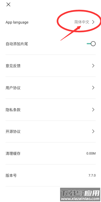 2. 在设置菜单中找到"app language"选项;