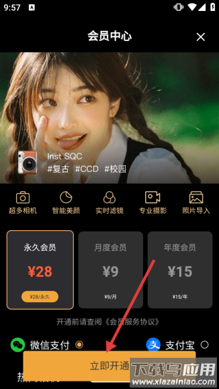 3、高级功能需订阅会员,在个人中心选择套餐后完成支付即可解锁全部滤镜;