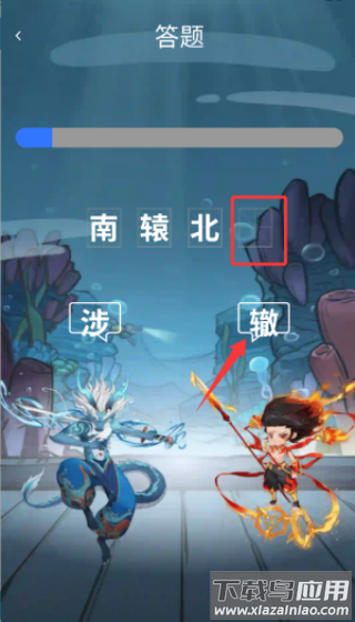 2、点击下方【辙】字,填入【南辕北辙】的空缺处。