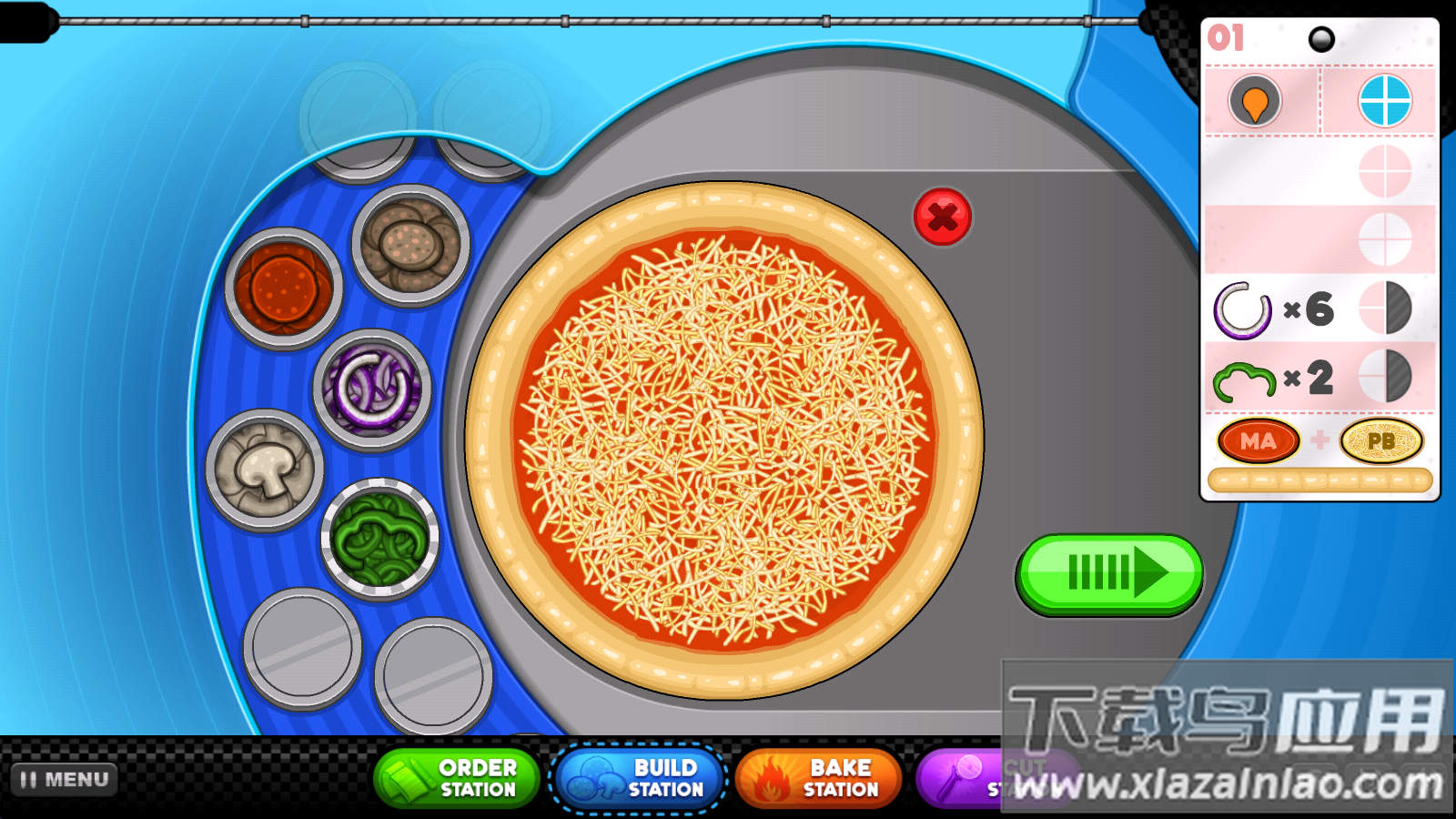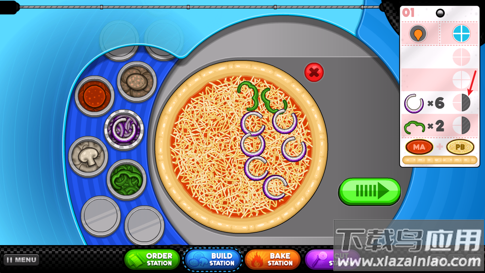 3、配料摆放是关键环节, pepperoni需间隔摆放,蔬菜要均匀分布,否则会影响最终评分;