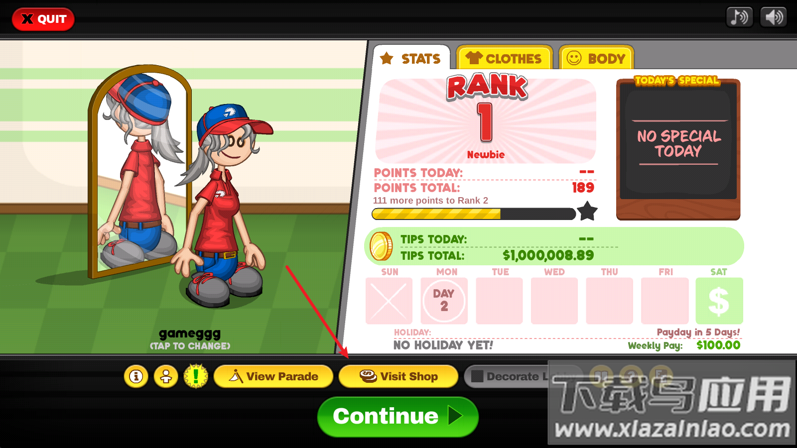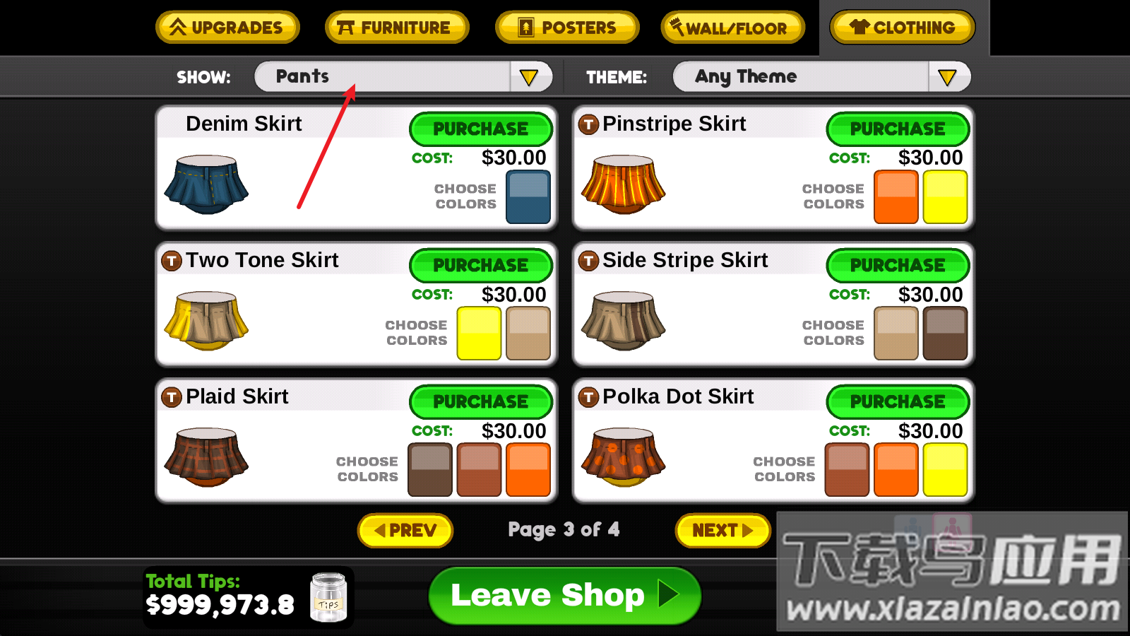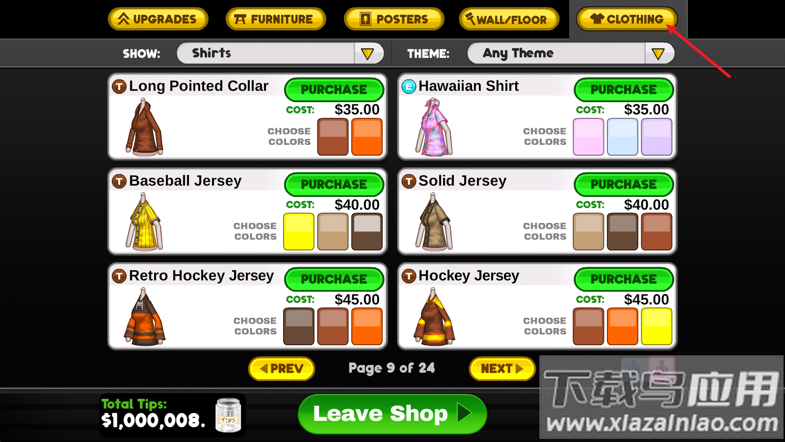 1、通过主界面进入服装商店,使用经营赚取的金币购买新服饰;