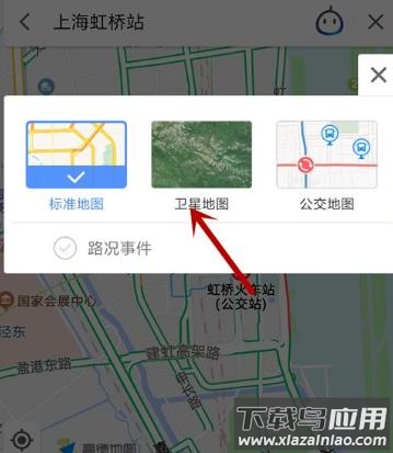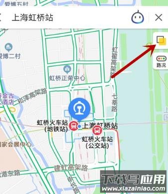 在搜索框输入目标地点后,点击右上角地图切换按钮;