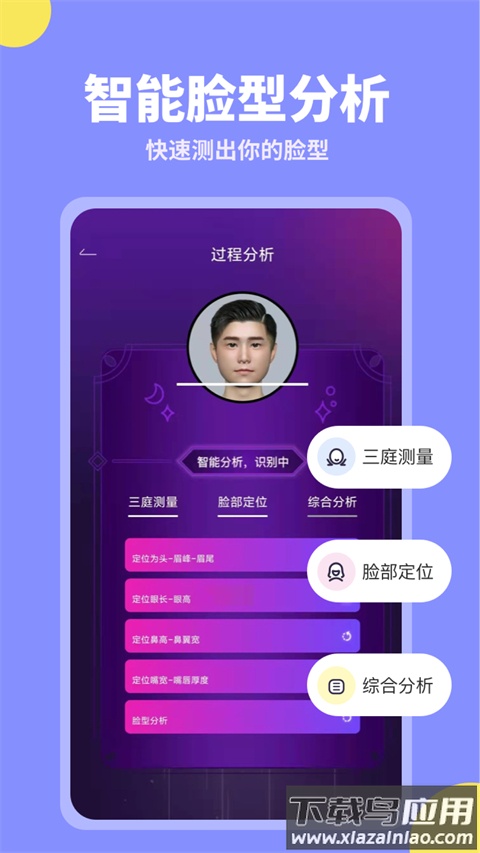采用先进AI算法,3秒完成面部扫描,精准分析脸型轮廓与五官比例;