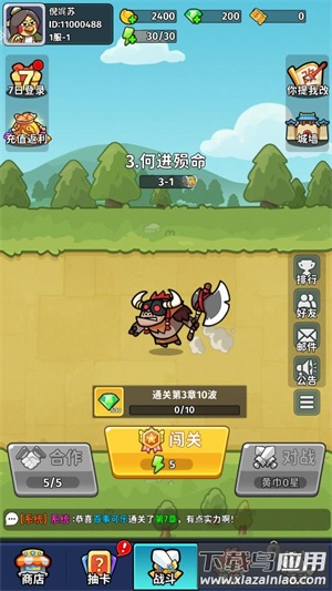 3、击败小怪掉落金币,攒够十连抽可能召唤穿女装的张飞;