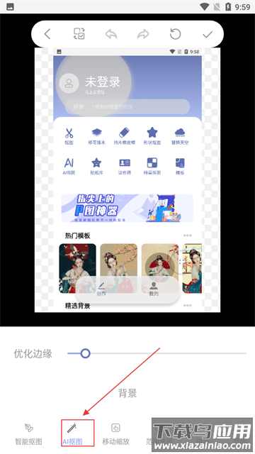 4、点击底部AI按钮自动抠图,可用画笔工具进行微调;