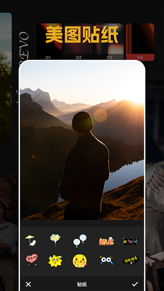3、通过底部工具栏可添加滤镜或贴纸,双指缩放可调整装饰元素位置;