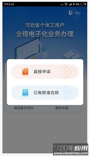 2. 选择个体户开业申请,区分"直接申请"和"已有核准名称"两种办理方式;