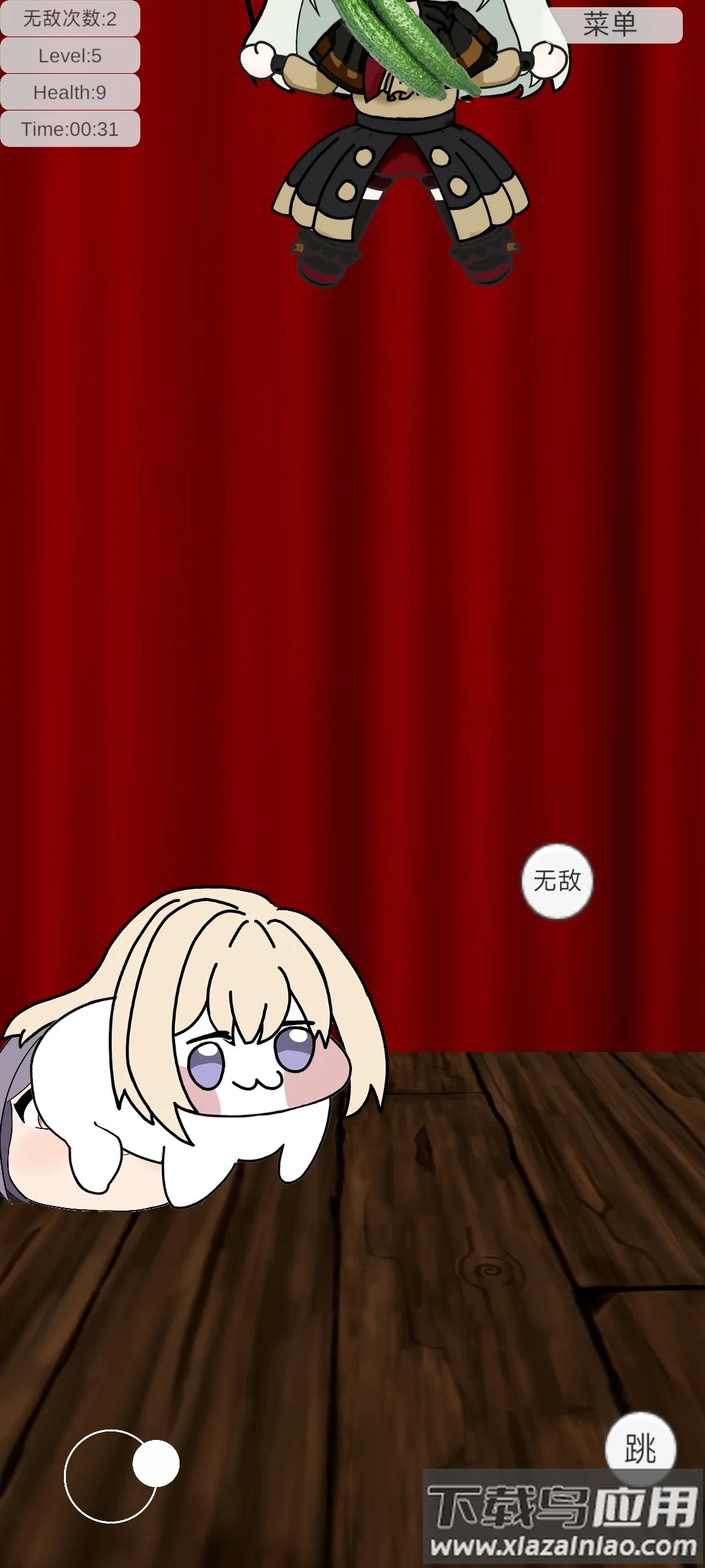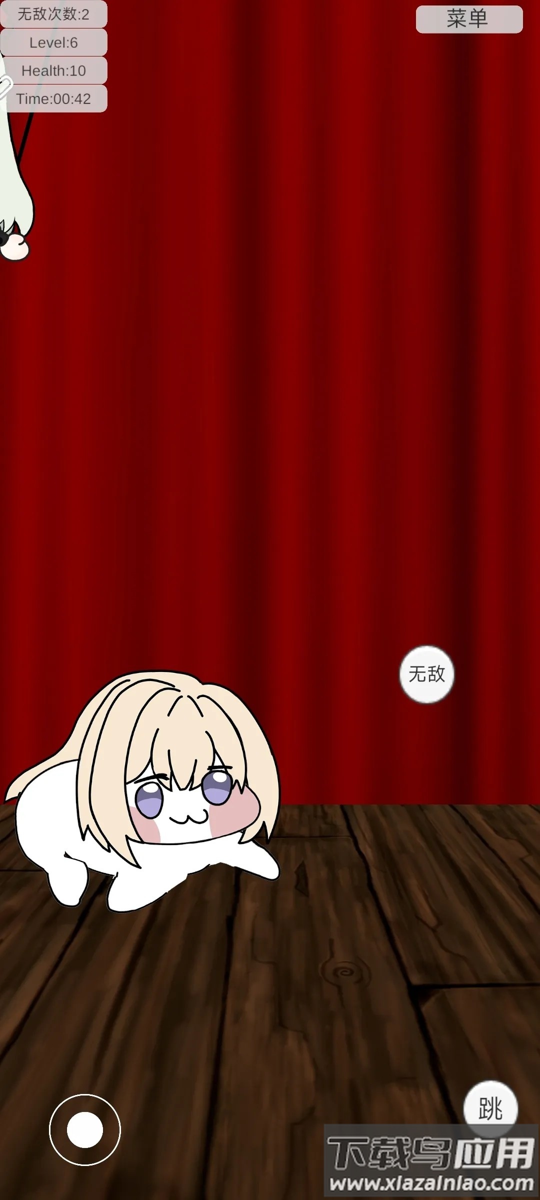 2、左侧虚拟摇杆控制移动方向,右侧按键分别实现跳跃和短暂无敌效果