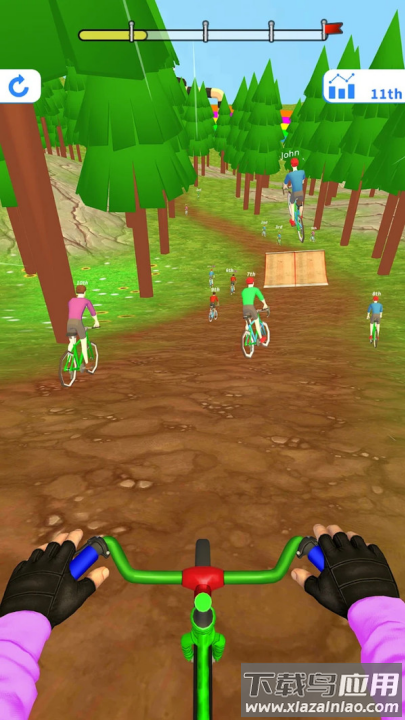 游戏包含8个风格迥异的主题场景,从霓虹都市到热带雨林各具特色;角色自定义系统可更换头盔、骑行服等装备;物理引擎精确模拟了不同地形的抓地力差异,沙地和冰面需要完全不同的操控策略;背景音乐会根据比赛节奏动态变化。