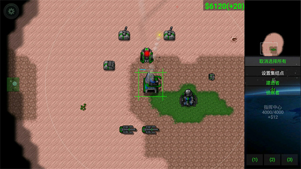 游戏开局需快速建造资源收集设施,优先占领地图上的金属矿点。兵营、船坞、机场等军事建筑要分散布局避免被集中摧毁;不同兵种存在克制关系,装甲部队需搭配防空单位协同推进。战役模式包含20个阶梯式难度关卡,生存模式则考验持久防御能力。